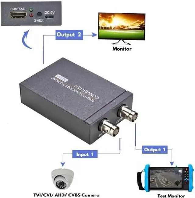 AHD/TVI/CVI/CVBS to HDMI Converter BNC to HDMI Video Adapter for Monitor HDTV DVRs