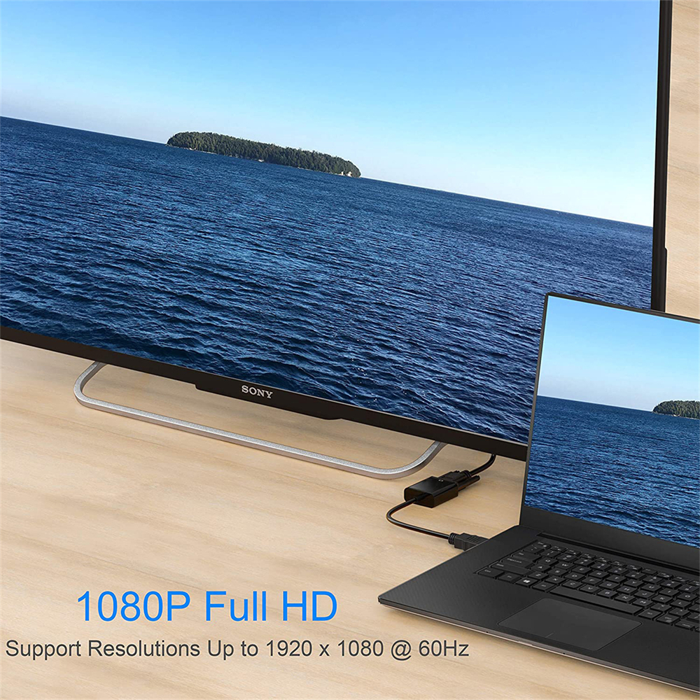 The HDMI to VGA adapter provides a cost-effective and easy solution for connecting a desktop, laptop, or other devices with HDMI port to a VGA display such as monitor, projector or TV.