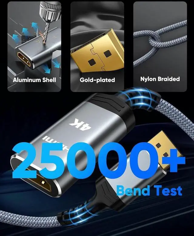 COMPATIBILITY: Perfect for graphics card (AMD NVIDIA) laptops (HP ) desktops (HP ) with Display Port connections this cable delivers vibrant realistic 4K resolution and smooth 3D visuals to large screensDURABLE