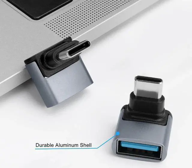 ? Right Angle DesignUSB C Male to USB A Female 90 Degree Right Angle Adapter for tight spaces near walls avoiding wear and tear on cables and device input ports.? USB 3.0 10GbpsUSB Female to USBC 3.1 Male Adapter supports up to 10Gbps data transfer speed which allows you to quickly transfer files and movies in a short period of time.? Wide Compatibility90° USB C to USB 3.1 adapter allows you to connect USB C devices (USB C cables/memory sticks/USB C hubs) to a laptop/charger with a USB-A port.? Plug and PlaySupports OTG function ideal for transferring data between computer peripherals and mobile devices; make sure your device supports OTG.