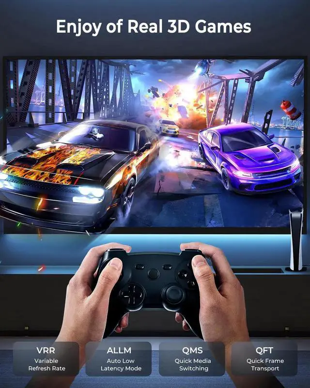 Gaming Lovers: This HDMI 2.1 cable delivers 8K HD picture quality. Game mode supports for eARC VRR QFT ALLM QMS HDR HDCP 2.2 / 2.3 technologies making image switching smoother and quality clearer which is tearing and lag eliminated. CABNEER HDMI 2.1 cable brings you an immersive movie watching and 3D gaming experienceMore