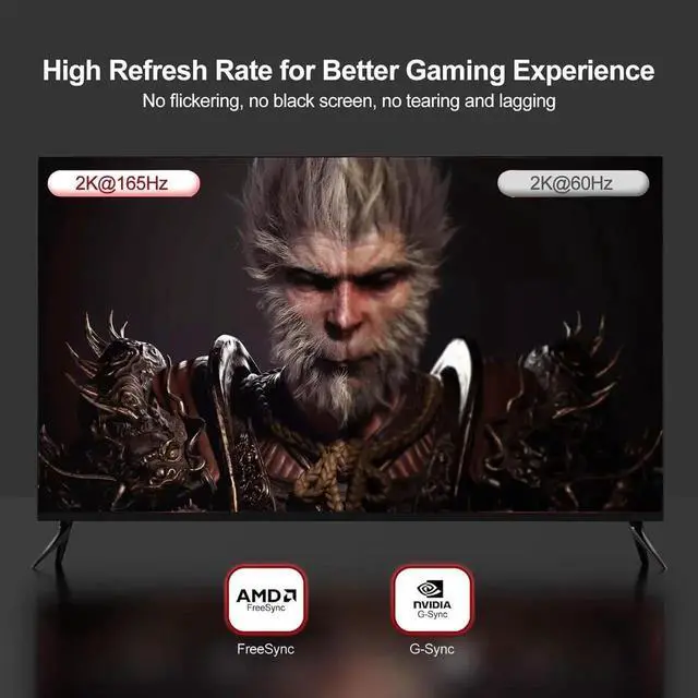 Performance: The high refresh rate of 2K@165Hz makes the game more smooth the screen scrolls more smoothly and the touch feedback is faster. This DP cable support 21.6G bps high-speed transfer HBR2 rated; Supports FreeSync and G-Sync technology 8-bit and 10-bit deep color and sharp images; Compatible with Audio Return Channel (ARC) 3D Surround Digital 7.1 5.1 channels DTS-HD and Dolby audioDisplayPort to