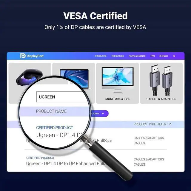 Cable: The UGREEN 8K DisplayPort cable is officially certified by which supports high resolution 8K@60Hz 4K@240Hz. And backward compatible with Display Port 1.3 1.2. It connects from DP to DP for better visual experience and there is no need for a driver or software.