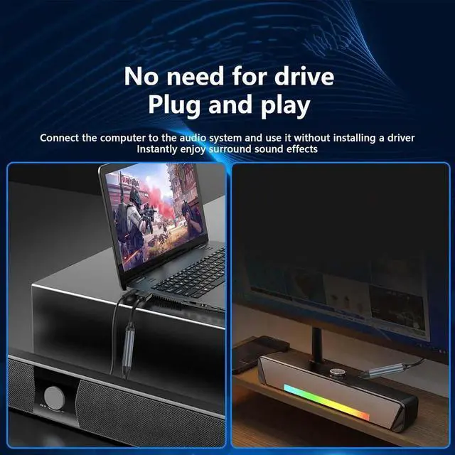 Easily connect to TV PSP, enjoy lossless surround music for desktop computers, laptops, TVs, fiber optic audio ports connecting devices: speakers, amplifiers, etc. Note: TVs must have USB ports, otherwise invalid can not be used