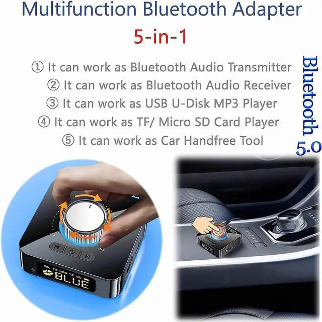 LCD screen: Unlike most Bluetooth adapters, ours comes with a large screen that displays TX, RX, USB, TF and volume level status. You can clearly know what mode you have selected, it's more convenient to use at home, in the office, or in the car than other screen-less adapters.