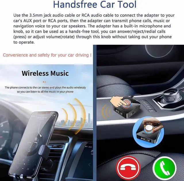 Hands-free Call: It has a built-in microphone, just press the big knob and you can talk to the other party without taking out your phone, free your hands, an ideal Bluetooth car adapter to ensure driving safety.