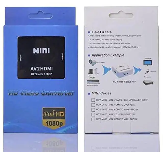 RCA to HDMI Converter: Converts CVBS (AV) signal to HDMI video signalDoes not include HDMI cable