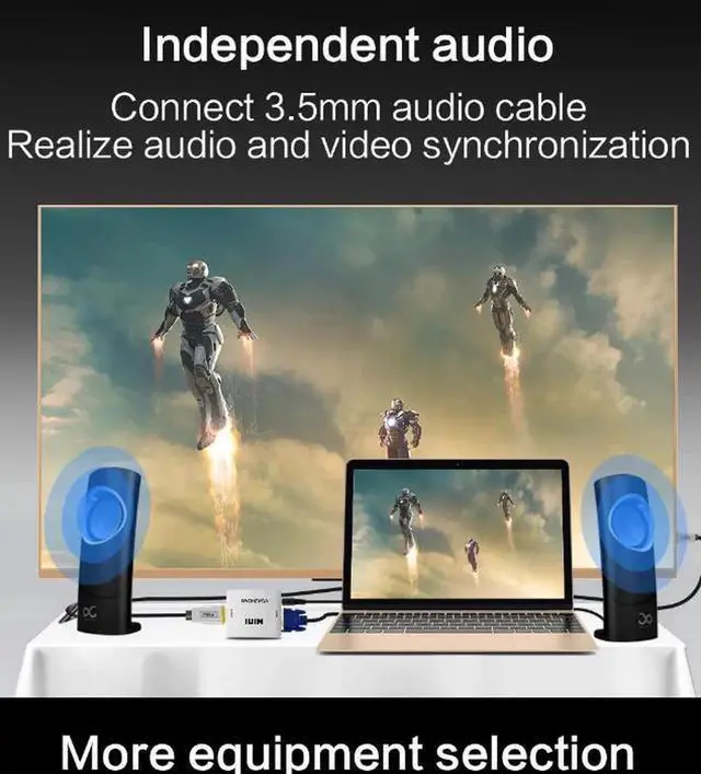 VGA to HDMI Converter converts analog VGA signals into ditail HDMI signals, both audio and vedio simultaneously, allowing devices with only VGA ports to have a larger display. As it is powered by USB power cable, it is compatible much more widely with most devices than those without power supplied.