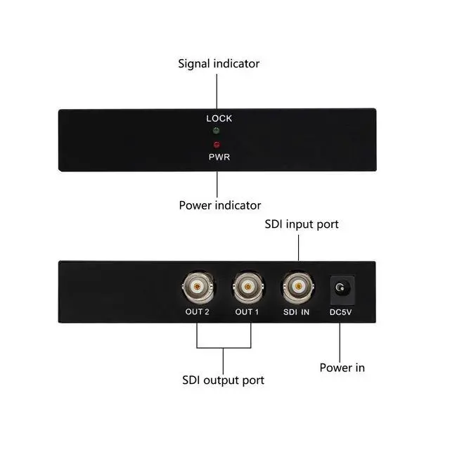 1.SDI splitter function After 3 installation is done,the splitter can start normal working.It can support SD-SDI(270Mbps),HD-SDI(1.485Gbps) and 3G-SDI(2.97Gbps) and distribute to 2 simultanous SDI outputs.