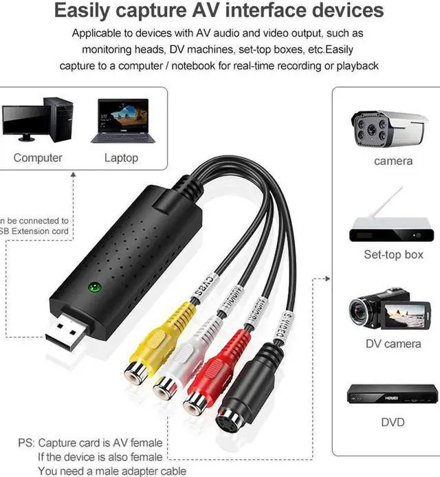 Video Audio VHS VCR Video Capture Card USB To DVD Converter Capture Card Adapter USB Video Capture Card AV Signa Monitor Capture