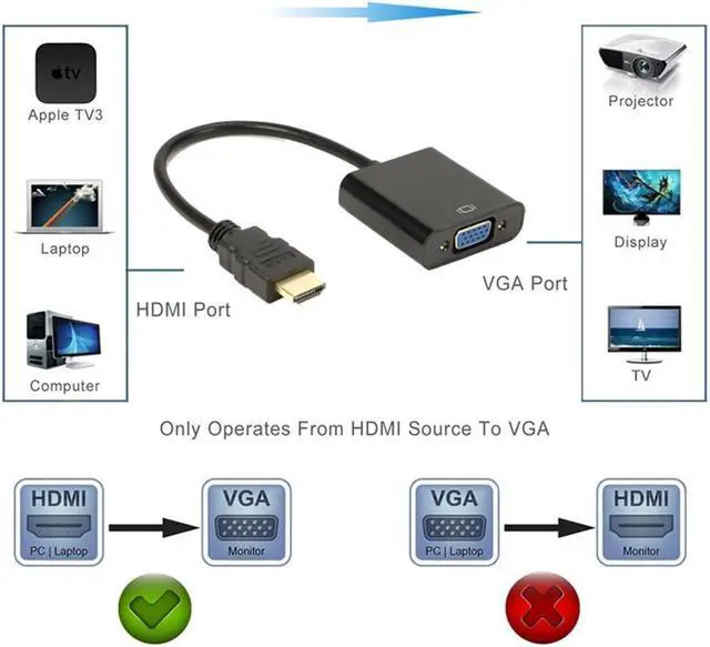 - Built-in advanced IC chip converts HDMI digital signal to VGA analog signal; It is NOT a bi-directional converter and cannot transmit signals from VGA to HDMI
