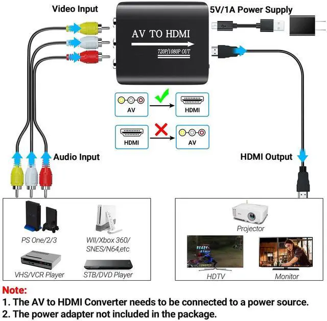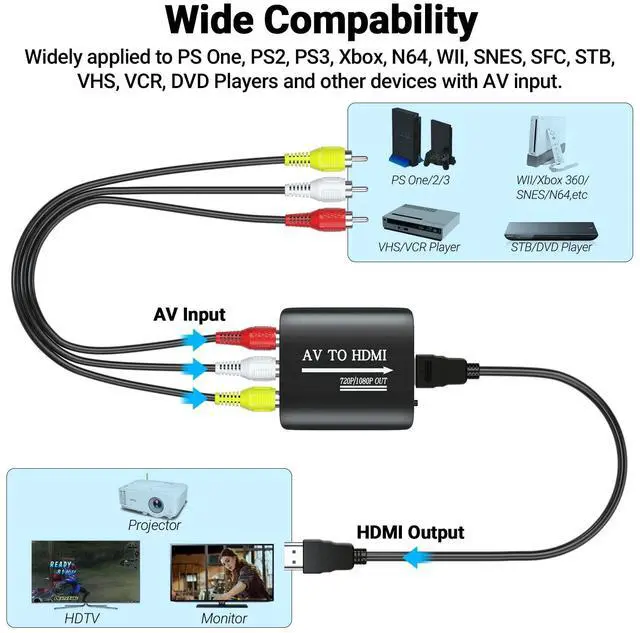 RCA to HDMI Converter,AV to HDMI Converter,RCA to HDMI,AV to HDMI,RCA to HDMI Adapter,AV to HDMI Adapter