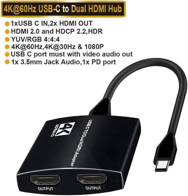 • The adapter helps your Laptop/iPad/Phones display the content to 2 monitors by its HDMI output, and the maximum resolution up to 4K @60Hz, crystal clear with zero lag . Using 2 monitors in work absolutely can boost your work efficiency to an up level.