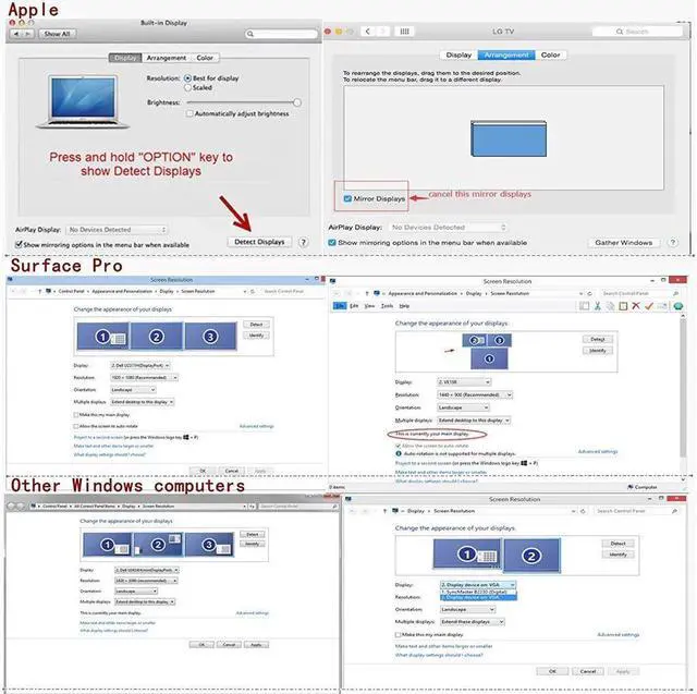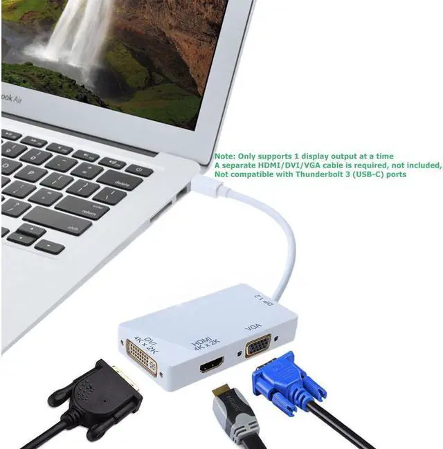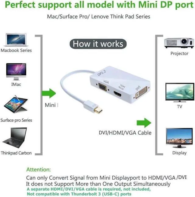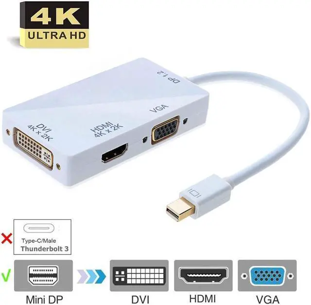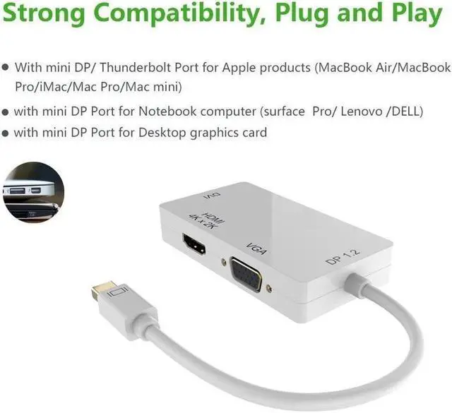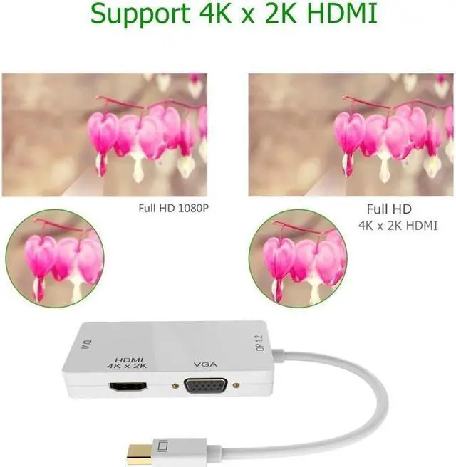 ENJOY GREAT DISPLAY: HDMI/DVI port support displays up to 3840x2160@30Hz (4K). Please use a HDMI 2.0 cable in order to enjoy the 4K resolution. VGA port support displays up to 1920*1200@60Hz, Therefore, mini displayport adapter is ideal for your office, home entertainment display, conference rooms, trade shows, and more.