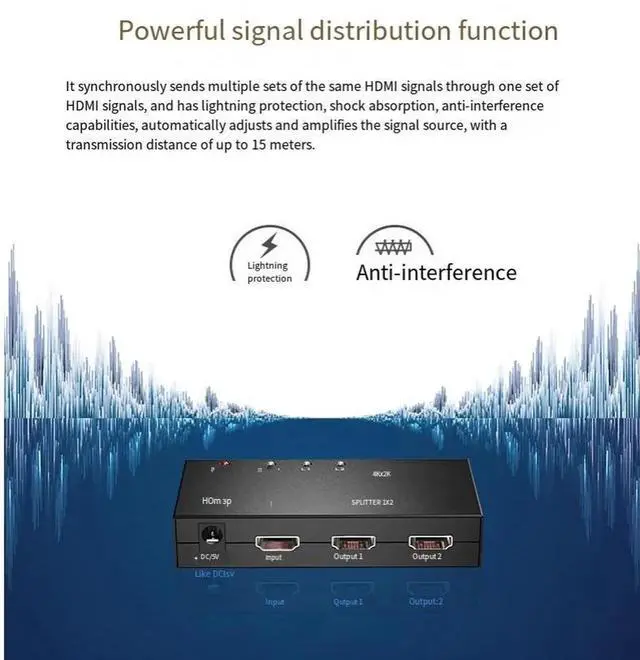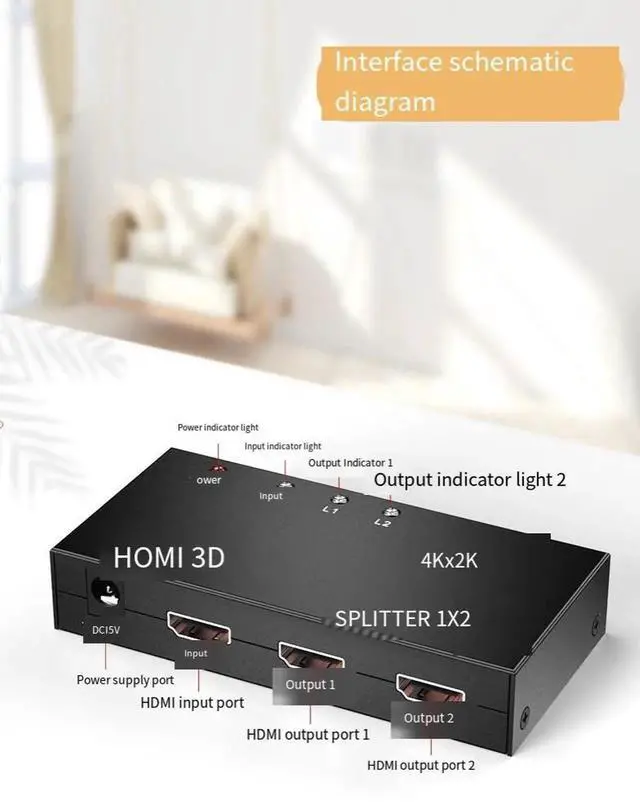 splitter 1 in 2 out, high-definition splitter 1 split 2, audio and video frequency divider, co-screen splitter 4K