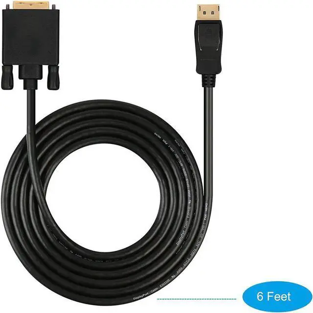 Active 6 Feet DisplayPort to DVI Cable connects a DisplayPort (DP, DP++, DisplayPort++) equipped laptop or desktop to an HDTV, monitor, or projector with DVI input; Transmits high-definition audio and video from your computer to an HDTV for video streaming or gaming; Connect and configure your monitor for an Extended Desktop or Mirrored Displays Supports video resolutions up to 1920x1200 / 1080P (Full HD); Supports AMD Eyefinity Multi-Display Technology Gold-plated connectors, bare copper conductors, and foil & braid shielding combine together to provide both superior cable performance and reliable connectivity DisplayPort connector with latches provides a secure connection with a release button that must be depressed before unplugging Product description Connection Notes -