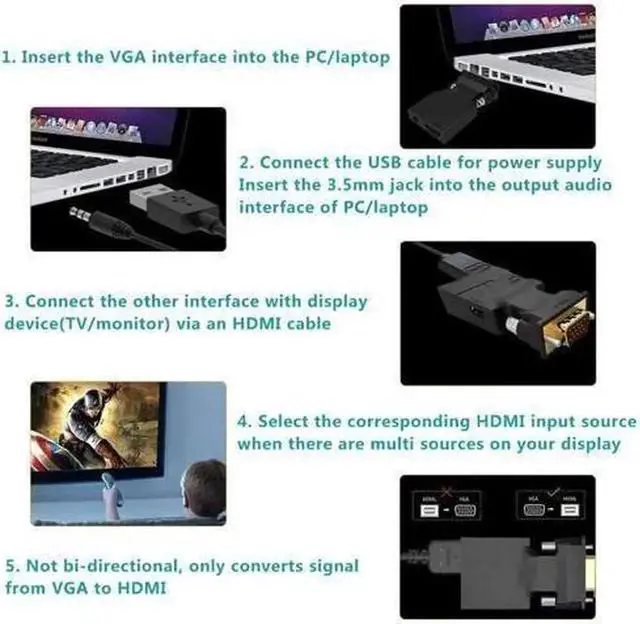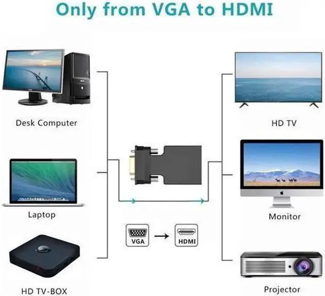 Portable VGA-to-HDMI Adapter/Converter. Easily hook up older stylish computer/laptop with VGA output to TV, monitor or projector with HDMI input for video streaming, game playing or sharing content.