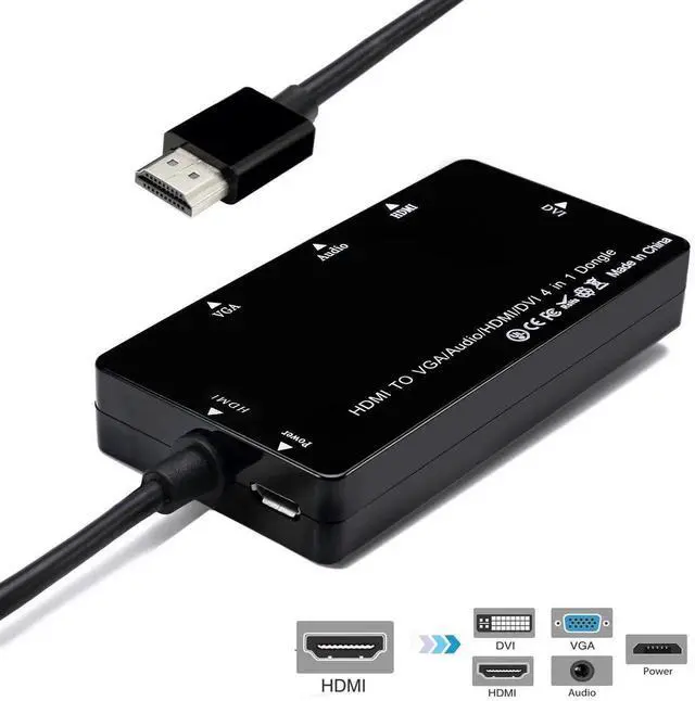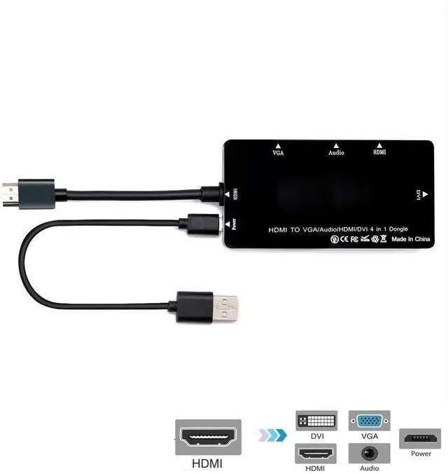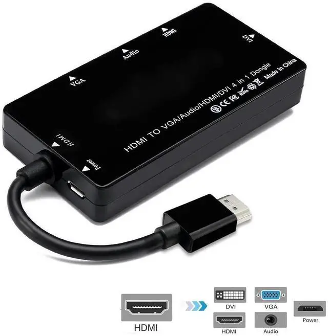 Transmit both audio and video from computer or tablet to HD TV via HDMI. Support video resolutions up to 1920x1080p (Full HD) and flawless audio pass-thru. Support audio output via VGA with connecting Audio interface external speaker needed for voice. When connect to monitors , all ports need a speaker to get audio out.