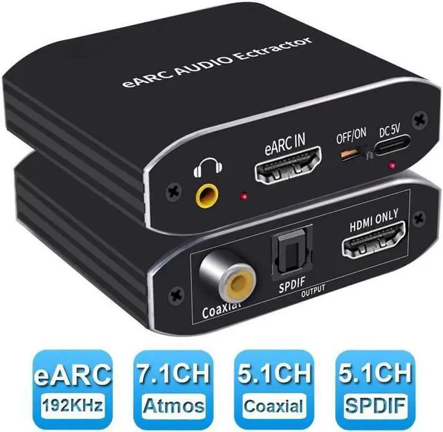 92KHz HDMI-compatible Audio eARC Extractor HDMI-compatible ARC To HDMI AUDIO +Toslink + Coaxial + L/R Converter Audio Return Channel