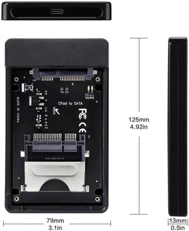 CFast to USB-C USB3.0 and SATA Card Adapter 2.5" Case SSD HDD CFast Card Reader for PC Laptop