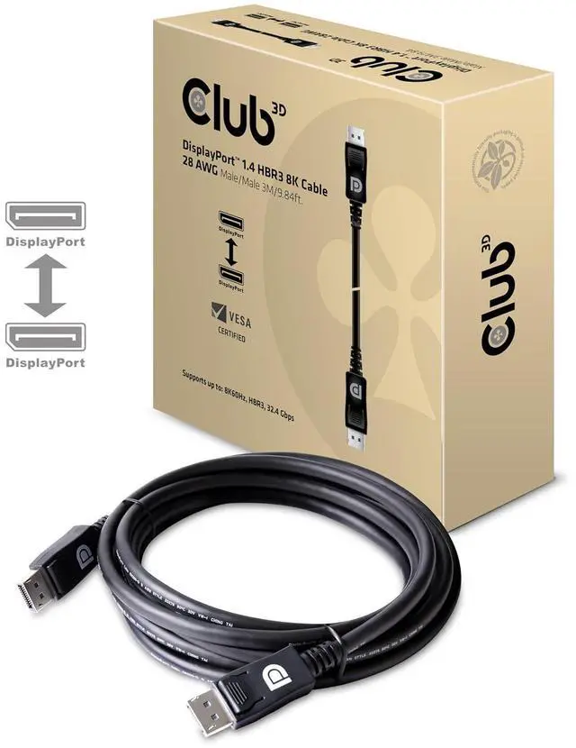 HIGH QUALITY: 3m/ 9.84 ft male-to-male certified DisplayPort 1.4 cable supports high-bandwidth HBR3 ( 32.4 Gbps) and features DSC 1.2 display stream compression and FEC forward error correction for HDR and resolutions up to 8K (7680x4320 @ 60Hz) 5K (5120x2880 @ 60Hz) and 4K UHD (3840x2160 @ 144Hz). It also offers audio pass-through for uncompressed digital 7.1 5.1 or 2 channels.