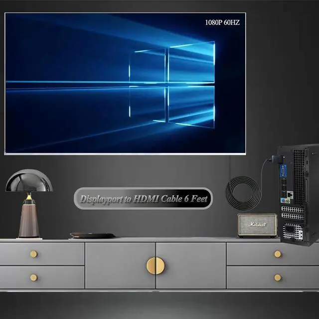 Convenient DisplayPort to HDMI cable directly connects a DisplayPort (DP DP++ DisplayPort++) equipped computer to an HDTV monitor or projector with HDMI input. Supports video resolutions up to 1920x1200 / 1080P@60HZ (Full HD) and flawless audio pass-thru for uncompressed digital 7.1 5.1 or 2 channelsDisplayport to HDMI cable transmits high-definition audio and video from your computer to an HDTV for video streaming or gaming; Display Port to HDMI adapter cable connects DP to HDMI and configure your monitor for an Extended Desktop or Mirrored DisplaysGold-plated connectors resist corrosion provide rigidity and improve the signal performance. NotesOnly work displayport source signal to HDMI Monitor/TV/ProjectorDisplayPort to HDMI cable is NOT bi-directional.
