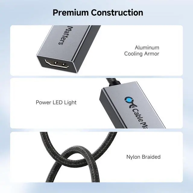 Durable Design: Premium construction of the USB C to HDMI adapter 4k 120hz features a premium braided cable for durability and prevents fraying; Metal connectors and aluminum enclosure of the USB-C HDMI adapter provides a premium look and feel and improves the performance of the HDMI 2.1 to USB C adapter