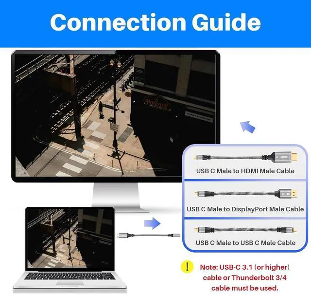 Note: When using the USB C female port to connect the Monitor please ensure that your USB Type-C cable version requires USB 3.1 / 4.0 /Thunderbolt 3/4 and supports video transmission function.