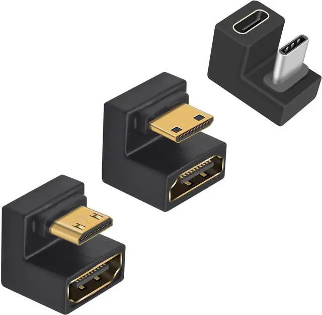 The 3 styles of 180 degree adapter sets are: 1. Up angle 180 degree mini HDMI to HDMI 2. Down angle 180 degree hdmi to mini hdmi 3. USB C 180 degree adapter.