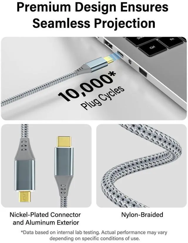Tangle-resistant braided design prevents tangling in couch areas. Critical Compatibility Notice >> ONLY SUPPORTS << signal transfer from Micro HDMI (source) to USB-C (display). > > DOES NOT SUPPORT << USB-C to Micro HDMI operation or charging functions.