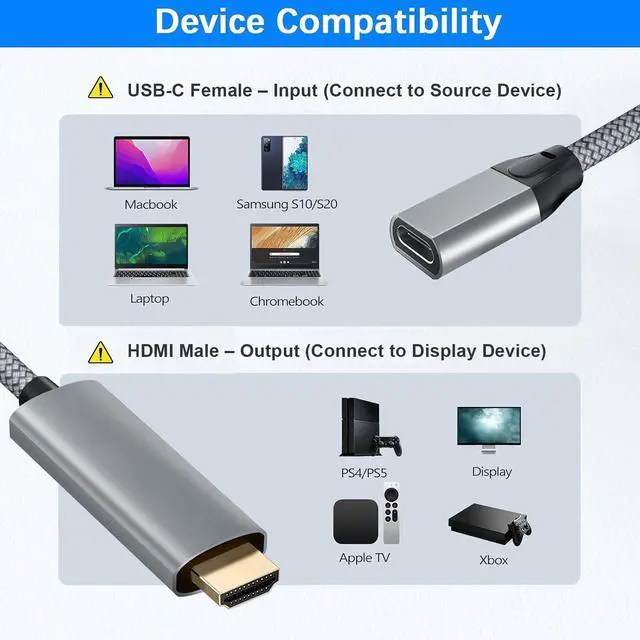 (Beware) Pay attention to the direction of signal transmission while using this product. The HDMI end of the converter should always be connected to the receiving device. The USBC port of the converter is for inserting your Type-C cable which has to be at least USB 3.1 to be able to carry video signals. To know more see the pictures and demo video. (Square Peg Round Hole? No more) The tech world is far from using a unified interface to connect different devices. But a simple converter can make that chaos go away.