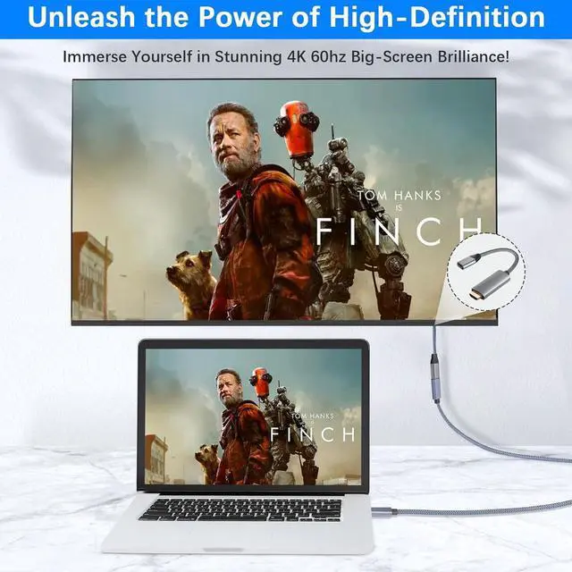 Equipped with an HDMI end and a USBC port this converter makes it possible to use your USBC port to export signals to a device it originally cannot connect to. (Extra Length Added to Your Strength) A few inches can go a long way. With a length of mere 8.5 inches this uniquely conceptualized converter can let 4K HD resolution content pass through it with minimum signal loss and provide steady connection to high-end monitors that feature up to 4K resolution and 60 Hz refresh rate. (Free Yourself by Attaching More) Free your eyes from the confines of a tiny screen and give it the feast it deserves on a large display.