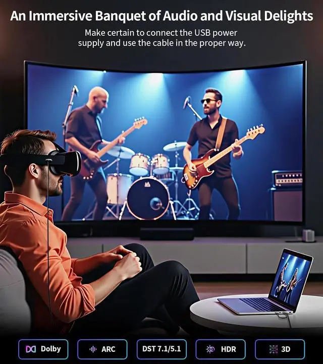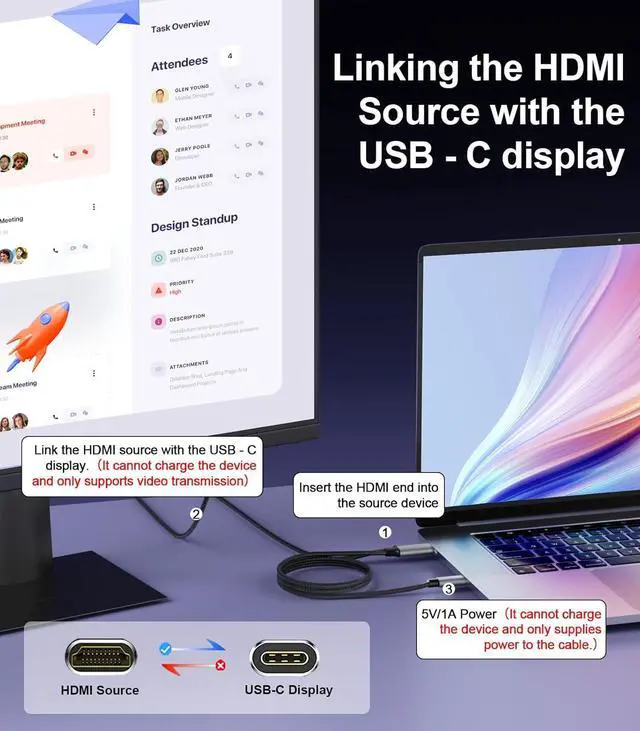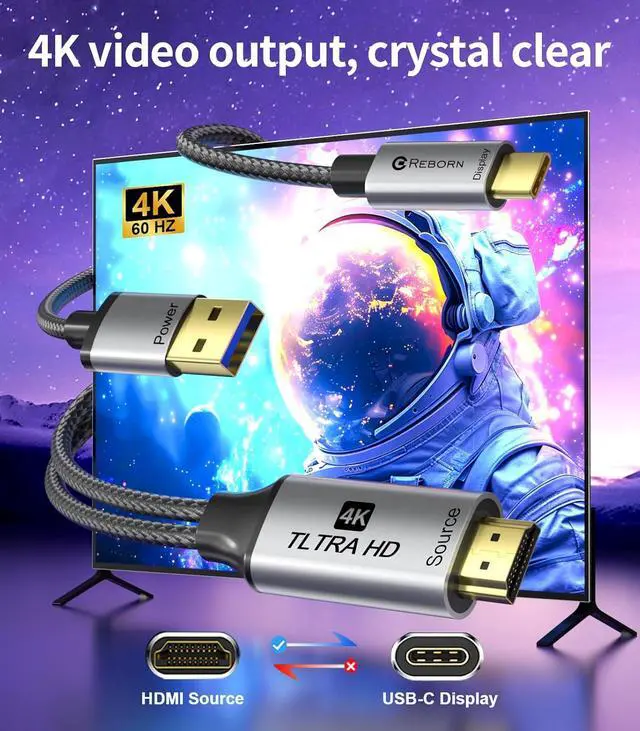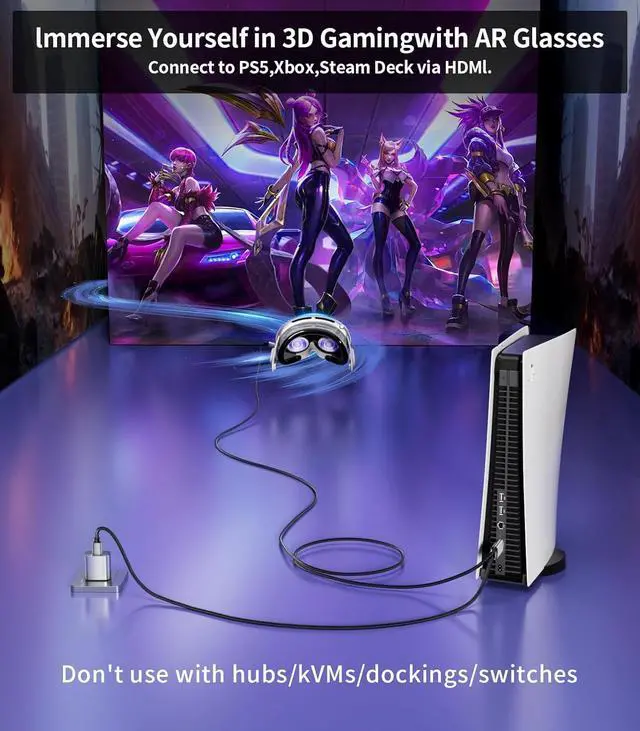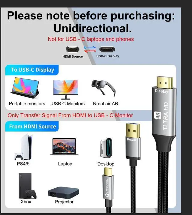 C cable simply: (1) connect to your HDMI source (laptop/PS5/Xbox) (2) plug into USB-C display and (3) attach included power for optimal 4K. This HDMI source to USB C display solution works instantly - no setup required. Universal CompatibilityThis HDMI cable to USB C solution seamlessly connects HDMI output devices (Switch/PS5) to USB-C displays (Rokid Max/Air/portable monitors). *Not compatible with hubs/docks/KVM switches or Studio Display. USB power for adapter only. *Premium ConstructionEngineered with advanced shielding technology this HDMI to USB C adapter for monitor delivers interference-free 4K@60Hz transmission. The durable nylon-braided cable withstands daily use while perfectly maintaining signal integrity between your devices. Reliable SupportBacked by our 24-month warranty and 18/7 customer service. Ideal for gaming professional work or immersive AR experiences with Xreal devices - we've got you covered.