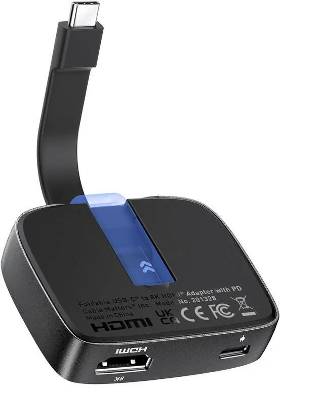 HDMI 2.1: Upgrade to HDMI 2.1 with a portable 8K USB C to HDMI adapter with a foldable cable; USB C to HDMI 2.1 adapter in a pocket-sized form factor with a tethered cable instantly transforms a USB-C port into a full-featured HDMI port for connecting an external projector monitor or television; Thunderbolt to HDMI adapter (Thunderbolt 4 to HDMI 2.1 adapter) supports HDCP 2.3 HDCP 2.2100W