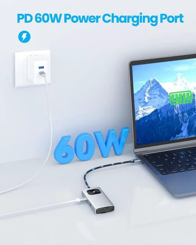 Power Outage: Plug and play don't require any software drivers or complicated installation process. 60Watts power delivery will fast charge your type-c laptop or tablet or smartphone. You need to prepare a fast-charging USB-C block and a USB-C fast charging cableSuper