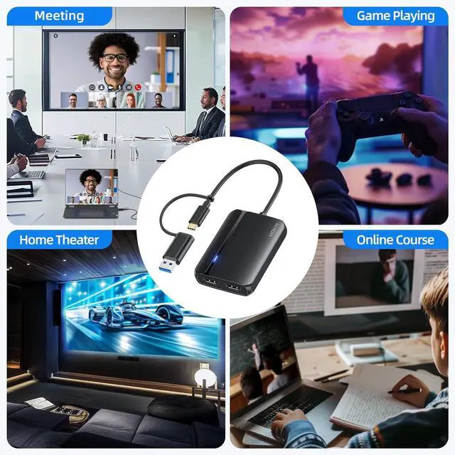 USB 3.0 to HDMI Adapter for dual monitorsUSB 3.0 to Dual HDMI Adapter allows you to connect screens simultaneously 4K@30Hz+1080@60Hz to your laptop. USB C to HDMI Adapter supports extended mode displaying different images on three screens.??