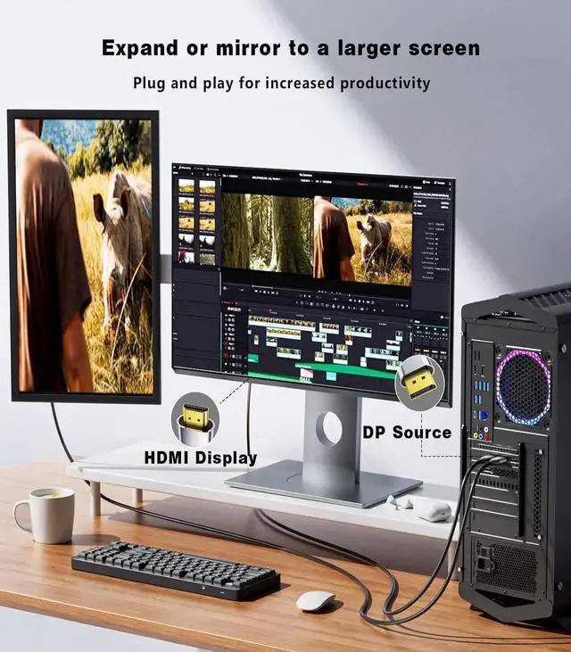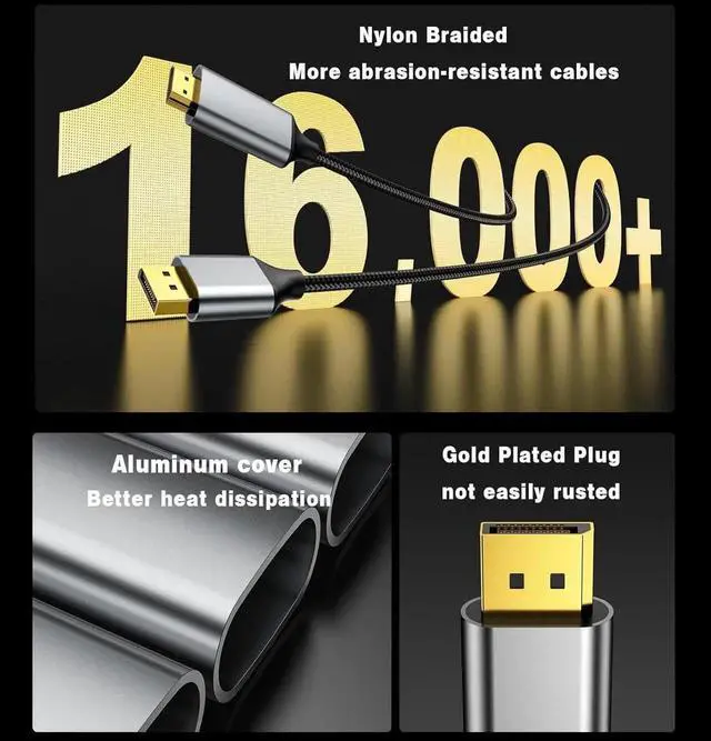 [Note: Only support one-way signal transfer from DP source to HDMI monitor]sturdy and durableDisplay Port to HDMI Cable is made of aluminum alloy one-piece housing with better heat dissipation and corrosion resistance cross braided with high-density nylon fibers the surface resistance to scratches is 5 times more than ordinary PVC cables. The non-locking 24K gold-plated plug protects the device from plugging and unplugging damage and the smart chip and 28AWG copper core cable ensure stable signal transmissionWidely compatible: For graphics cards or GPUs that support DP DP++ DisplayPort++ Perfect for graphics card (AMD NVIDIA) laptops (HP ) desktops (HP )