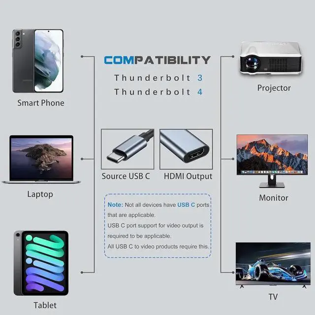 Wide ApplicationUSBC to HDMI adapter can transfer video from a laptops tablet or smartphone to a monitor TV or projector for multi-screen display. (not from HDMI to usb c) Audio and VideoSynchronous transmission technology when the video is transmitted the sound will also be together. You can enjoy them at the same time without additional audio cables. Mirror and Extended Enjoy your videos on the big screen or get more done. Fashionable high-end design metal shell suitable size using environmentally friendly materials more secure and reliable. Ultra High ResolutionUp to 4K (3840 x 2160) 30HZ compatible with 2K 75HZ 60HZ 1080P 120HZ 60HZ (Full HD) 720P 120HZ 100HZ 60HZ ect.