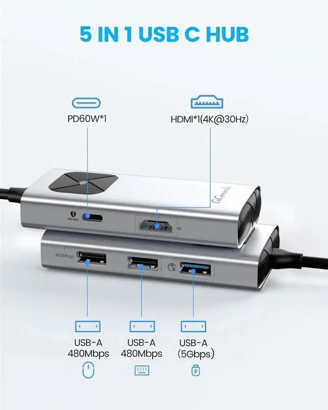 Speed Transfer: This usb type c hub has one USB 3.0 port with super speed data transfer up to 5 Gbps 10x faster than USB 2.0 480 Mbps. Work with USB flash drive camera portable solid state drive mouse keyboard or any other USB-A 2.0 /USB-A 3.0 devicesBroad