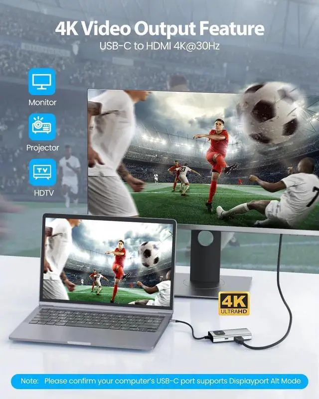 HDMI Video Output: Extend the display of your laptop/tablet/smartphone to your TV monitor or projector in up to 4K UHD (3840x2160 30Hz) resolution. Work with most HDTV monitors projectors and other devices with hdmi port offering vivid and clear imagesGet Rid of