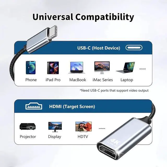 Stable Transmission: Equipped with an advanced IC chip this USB-C to HDMI adapter ensures reliable USB-C to HDMI signal conversion eliminating lag or interruptions. Optimized for extended gaming sessions 4K streaming and professional meetings with HDMI to USB-C stability. Audio-Video Sync for
