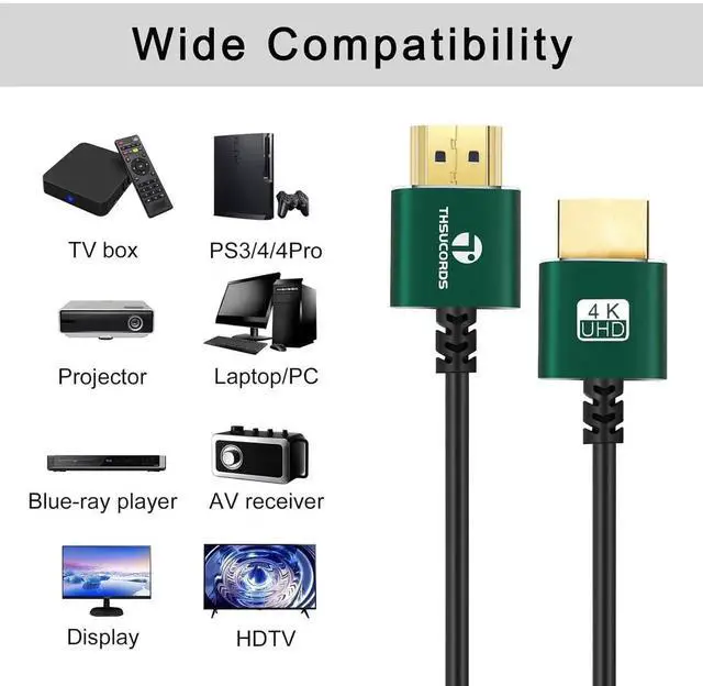 Ultra-Thin & Flexible: Thsucords Ultra-Thin and flexible HDMI high speed cable is 10FT and fits perfectly in tight spaces supports all HDMI Features in a Soft & Skinny Design Easy to carry and use.