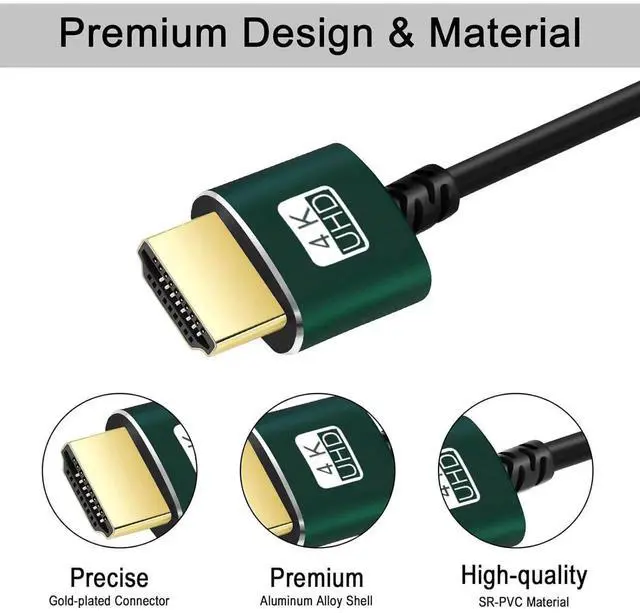 High Speed HDMI Cable: Hyper Slim HDMI Cable Supports 18Gbps 4K/UHD@60Hz including HDMI 2.0 a/b 1.4 a allows for unrestricted video in 4K 2160p (UHD) 1440p (QHD) and 1080p (HD).