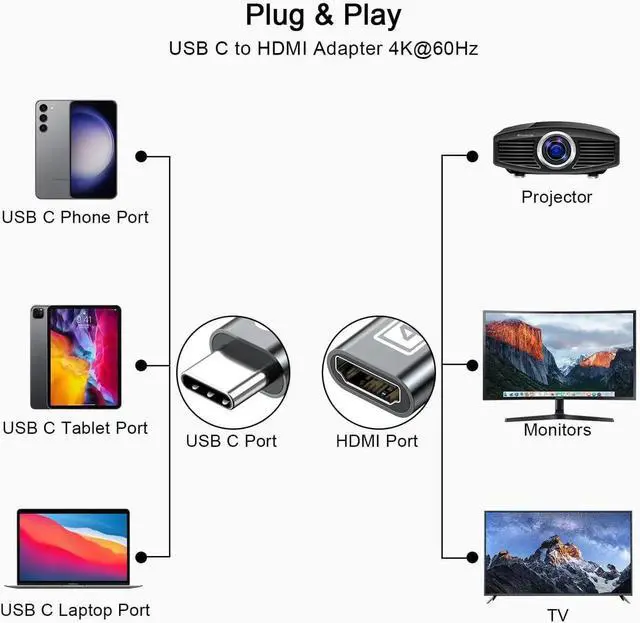 ![Alt view image 6 of 7 - JAENFONG USB C to HDMI Adapter 4K@60Hz USB Type-C to HDMI Female Adapter [Thunderbolt 3/4 Compatible] for MacBook Pro/Air for iPhone16/15 Surface Galaxy S25 S24 USB C Laptop Tablet Cell Phone](https://c1.neweggimages.com/productimage/nb640/C280S250920034ZF091.jpg)