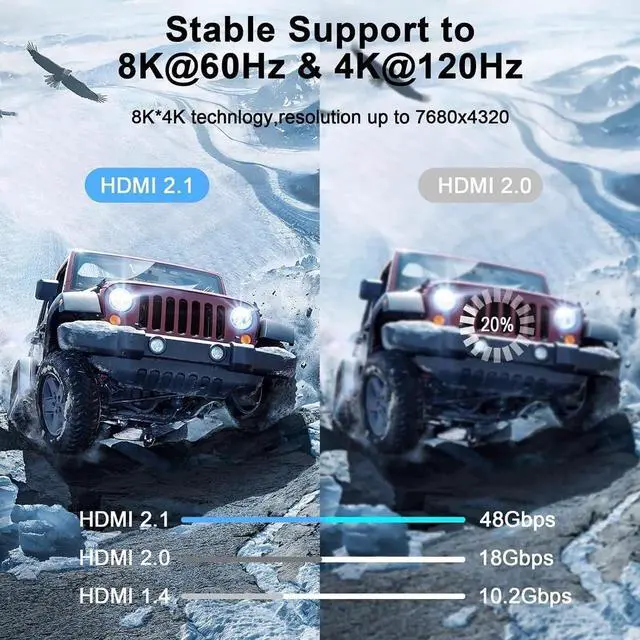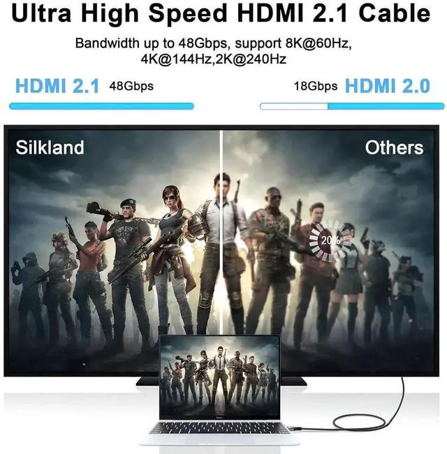 8K HDMI Cables: Supports resolution and refresh rate up to 8K@60Hz 4K@120Hz transmission speed up to 48Gbps bandwidth Dynamic HDR 10 Variable Refresh Rate (VRR) Quick Frame Transport (QFT) and Quick Media Switching (QMS) Support eARC can achieve more advanced audio signal control capabilities. It is also backward compatible with HDMI 2.0 b/ 2.0 a/ 1.4 / 1.3 / 1.2 / 1.1 versions. HDMI Cable For Game Enthusiasts8K HDMI cable delivers a super smooth picture of 4K@120HZ with Quick Frame Transport/Quick Media Switching and Auto Low Latency Mode. The Variable Refresh Rate eliminates stuttering and frame tearing providing you with smoother and more accurate gameplay. NEWEST TechniqueThsucords NEWEST advanced technique High Speed HDMI 2.1 cableStrong Braided HDMI Cord with a bending life of 25000+ triple tin shielded 24K gold-plated connectors. Warranty Policy We offer 12 months warranty for this 8K HDMI Cables Please feel free to contact us for a replacement if it has any quality issue within warranty.