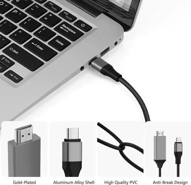 High-Quality USB C HDMI Cable This USBC to HDMI cable is anti-fraying and anti-tearing. Made of double braided premium nylon material With the durable connector and aluminum housing it ensures high-speed data transmission without interference and performs better at heat dissipation. Compact design fits snugly with the USB C Ports on your devices better signal transmission protection.