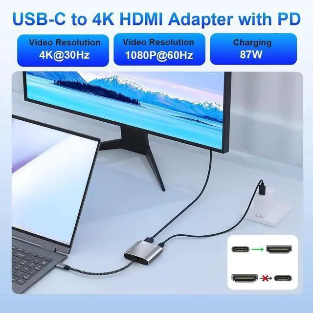 USB C to HDMI AdapterHDMI 4K Conversion Adapter is specially designed for USB Type-C smartphones PCs tablets computers and more. This HDMI adapter connects to your TV monitor projector via USBC to expand the screen of your device. Movie enjoyment is stable and uninterrupted family enjoys 4K Ultra High Definition visual effects. (Must support 4k computer cell phone monitor