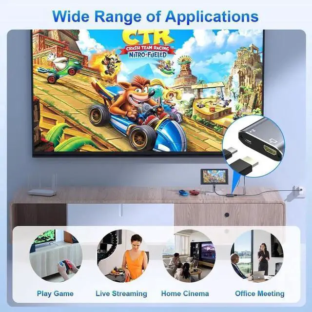 HDMI cable) (Note: only support USB-C to HDMI uni-directional transmission)Support 4K@30hz HD Resolution? Large Screen DisplaySupports large screen with high definition to match your own 4K (2560*1440) TV. With lower compatibility support 4K@30hz 2K@30Hz 1080p@60Hz 1080I 720p and other HD resolutions. [Important Note] This Type-C HDMI Conversion Adapter can support Thunderbolt 3/Thunderbolt 4 or DP Alt mode for the Type C source port on the device before purchase. If you have any questions please contact us. Wide Application ScenariosEquipped with Mirror Mode that allows you to duplicate the same image in Mirror Mode for a more comfortable visual experience on a large screen and Expansion Mode that allows you to expand your workspace in Expansion Mode it can also be used as a projector for work and meetings or in the living room as a large-screen monitor connected to the device you are using. Instant Access and Easy to Use No driver/software installation is required so you can connect to devices such as laptops smartphones game consoles etc. and easily connect to monitors/TVs/projectors etc. and enjoy a big-screen viewing experience with the transmission of video and audio. Suitable for a variety of occasions: playing games at home only in conference rooms research laboratories presentations exhibitions company work etc. for presentations and movie viewing awards etc. Wide Compatibility/Applicable to Various MachinesCompatibilty for iPhone 15 Pro/Max MacBook Pro? Air 2022 2021 2020 2019 2018 2017 2016 / Surface Book 2 / MateBook / ChromeBook / Google Pixelbook/ XPS 15 13 /Steam Deck/ Image output. TypeC HDMI Smartphone. Devices compatible with USB Type C conversion port. (For Xperia Sharp Aquos please make sure to inquire first. ) [Note] Since this is a non-exhaustive list please check the product description for the corresponding models and non-corresponding models before purchasing.