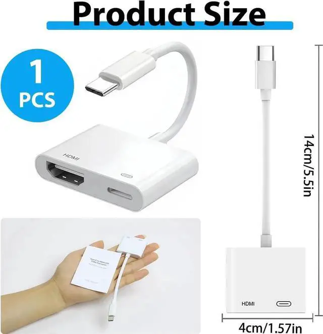 ![Alt view image 2 of 7 - JAENFONG [ MFi Certified] USB C to HDMI Adapter for iPhone 16 15 to TV USB-C Digital AV Adapter 4K Sync Screen Cable with Fast Charging Port Plug & Play for iPhone 15 16 iPad on HDTV/Projector/Monitor](https://c1.neweggimages.com/productimage/nb640/C280S25092003WGFI03.jpg)