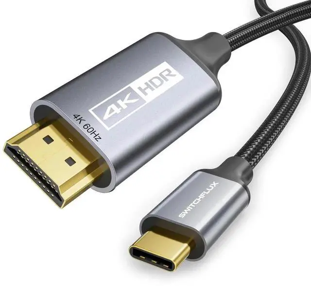 [Note: Only support one-way signal transfer from USB C source to HDMI monitor]Extraordinary RuggednessThe USB Type C to HDMI cable features a rugged aluminum alloy one-piece housing for excellent corrosion resistance and better heat dissipation and 24K gold-plated connectors to ensure excellent durability even under heavy use and multiple plugs and unplugs (more than 10 000 plugs and unplugs tested). Nylon braided cable protectors with multiple shielding ensure stable signal transmission without worrying about ghosting and audio/video synchronization. Wide CompatibilityDesigned for Type C ports (Thunderbolt 3/ 4) with video out (DP Alt Mode). Compatible with iPhone 15 series MacBook Pro 2016-2021 MacBook Air 2018-2022 iMac 2017-2020 iPad Pro 2018-2021 iPad Air 2020-2022 XPS 17/15/13 Surface Book 3 Surface Laptop Go Surface Laptop 3 Surface Pro 7 Galaxy S22/S21/S20 Note 20/10 and more. Support Windows Android ChromeOS macOS and other mainstream systems. SWITCHFLUX1*USB C to HDMI Cable Adapter 6Ft. is dedicated to introducing superb-quality products that are sophisticatedly designed and reasonably priced for providing the best solutions to connect your work and life. Consult for fast and responsible support within 18hrs!